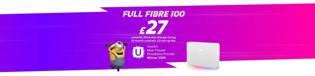 Includes Sky Talk Pay As You Go with phone services for Gigafast via Internet Calls. Standard prices may vary. No set-up fee. New customers only. Availability: Fibre 100 (49% of UK homes), Ultrafast (55%), Ultrafast Plus and Gigafast (49%).